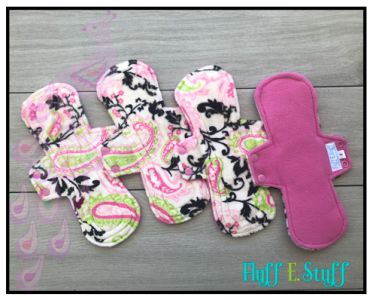This is a listing for a 4 pack of regular pads topped with paisley print Minky featuring double snap closure.