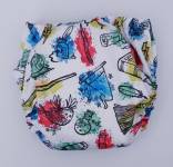 Outer of HP print PUL, inner of athletic wicking jersey. Pocket opening to place the insert inside.